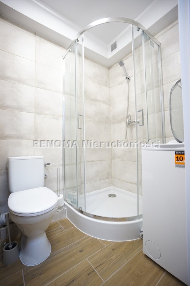 W sypialni jest rozkładane łóżko. W kuchni nowe meble i nowy sprzęt AGD (lodówko-zamrażarka, płyta gazowa, mikrofala). Łazienka z prysznicem 90, zlewem, pralką i WC.
