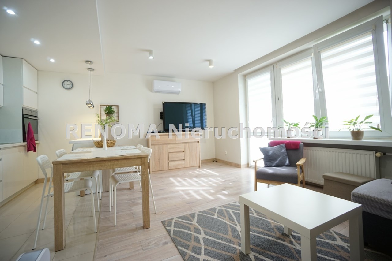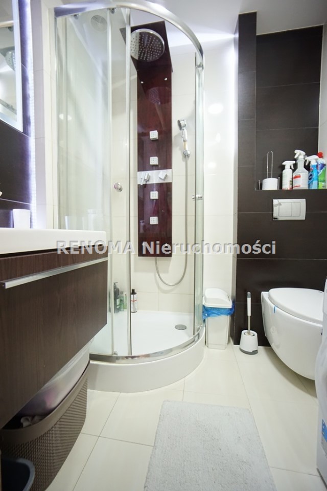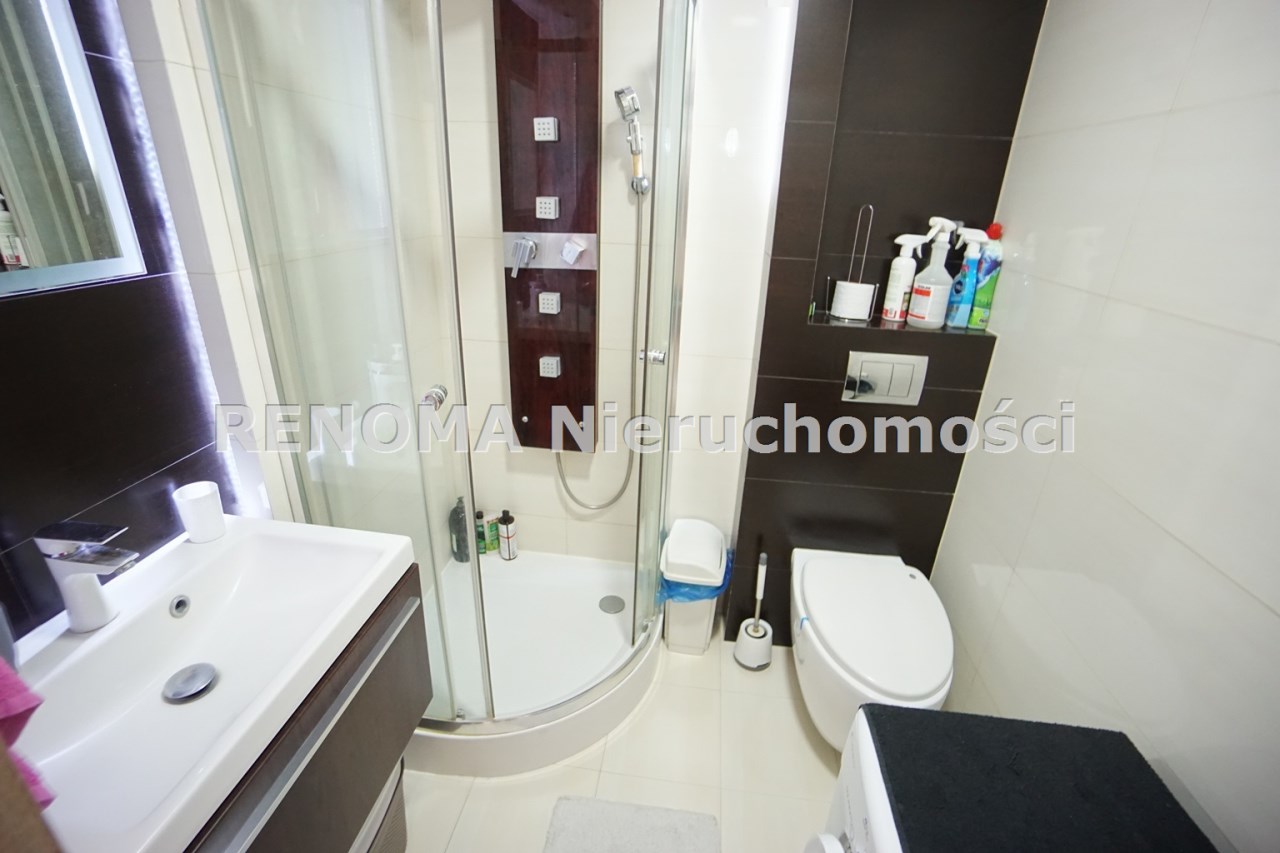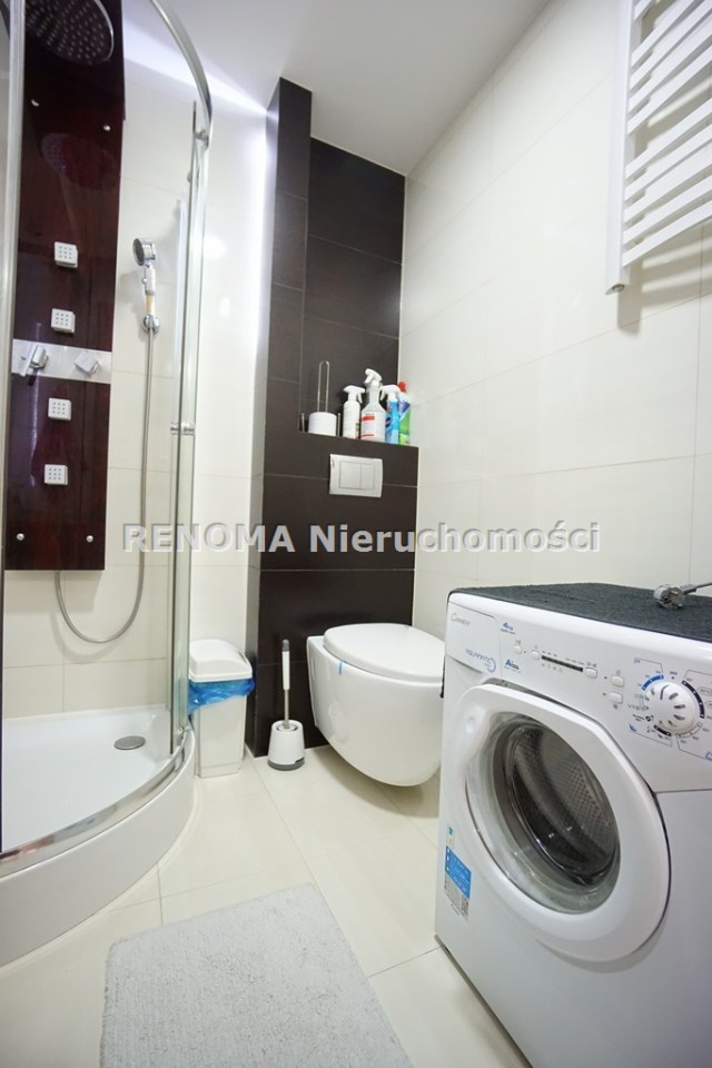 Mieszkanie jednostronne, nowa klimatyzacja z 5-letnią gwarancją. W kuchni zmywarka, lodówka, płyta indukcyjna. W łazience kabina prysznicowa, pralka