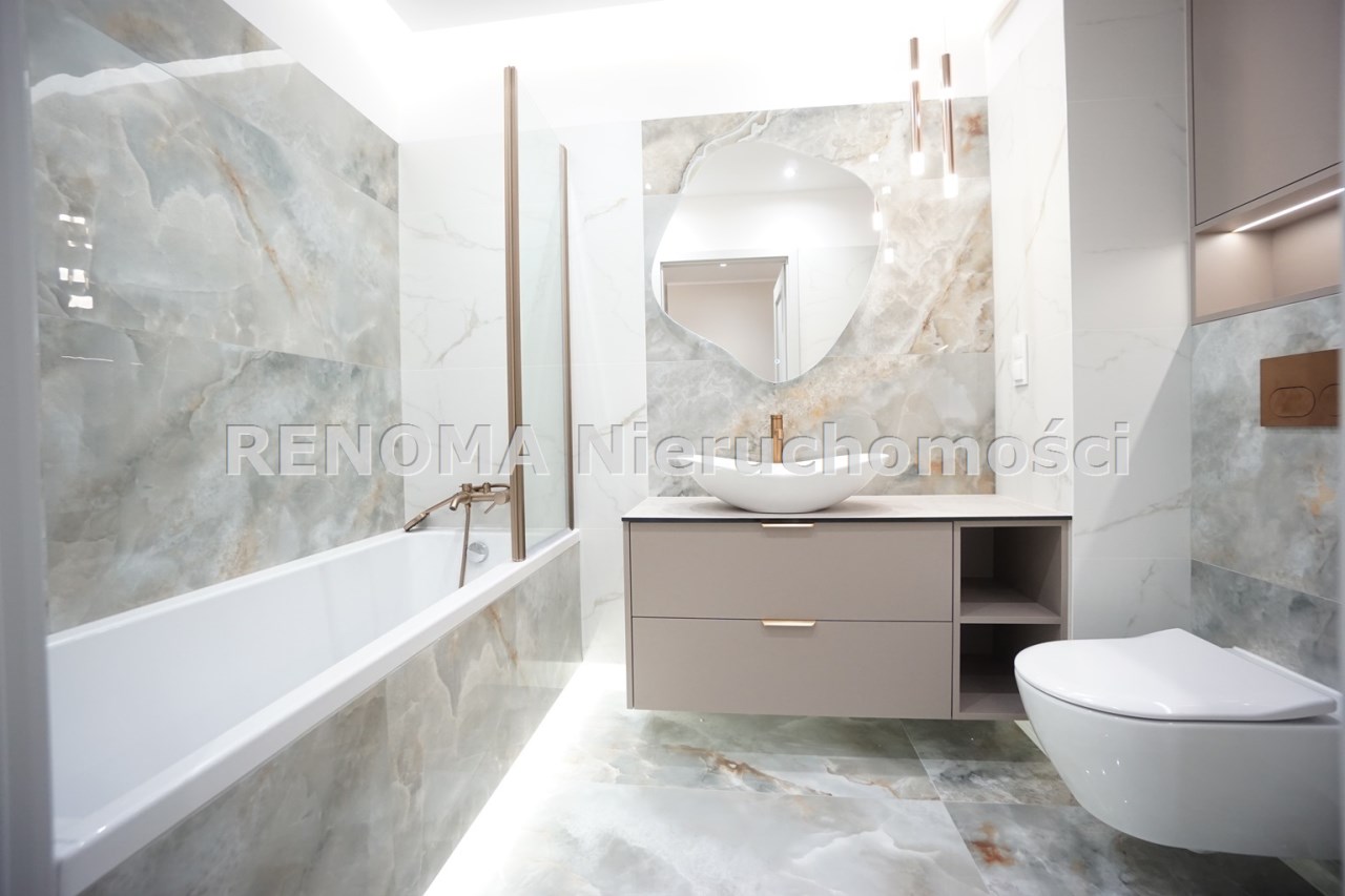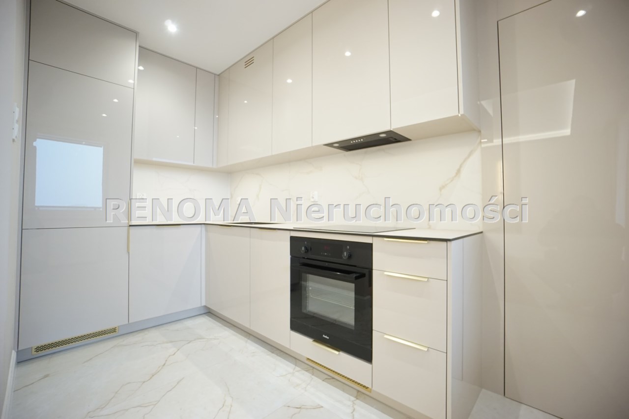 Mieszkanie wykończone przy wykorzystaniu materiałów wysokiej jakości z nowym sprzętem AGD w kuchni (sprzęt - piekarnik, lodówka, płyta indukcyjna, okap, zmywarka). Kuchnia w pełnej zabudowie na wymiar.